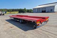 CMT przyczepa niskopodwoziowa tandem 2007 rok; ABS; pneumatyczne zawieszenie; 2 osie BPW; wciągarka hydrauliczna; rozmiar opon: 235/75R17,5; długość platformy: 7,80 m; szerokość: 2,55 m; wysokość: 0,90 m; DMC: 17500 kg; masa własna: 4975 kg; ładowność: 12525 kg; nowe najazdy aluminiowe;