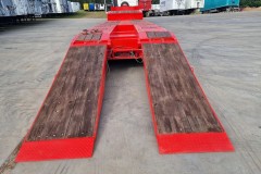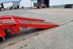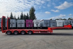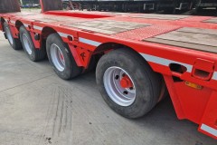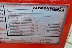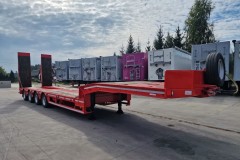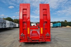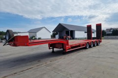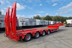 FAYMONVILLE naczepa niskopodwoziowa; rok produkcji: 2007; I rejestracja 02/2009; 4 osie BPW; ostatnia oś skrętna; najazdy hydrauliczne; poszerzana do 3,00 m; DMC konstrukcyjne 64600 kg; masa własna: 11840 kg; długość 13,40 m (9,25 m +4,15 m); naczepia po odnowie lakierniczej;