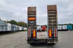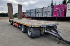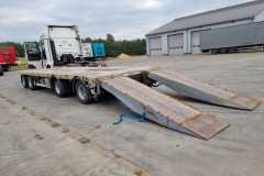 MTDK przyczepa niskopodwoziowa 2015 rok; 4 osie SAF; hamulce bębnowe; rozmiar opon: 245/70R17,5; najazdy hydrauliczne o długości 3,00 m; długość: 8,40 m; szerokość: 2,54 m (poszerzana do 3,00 m); wysokość: 0,90 m; DMC: 30000 kg; masa własna: 9180 kg; ładowność: 20820 kg;