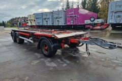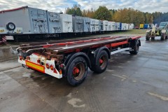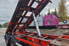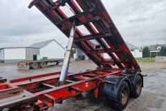 KEL-BERG przyczepa hakowiec z wywrotem do przewozu kontenerów; rok produkcji 2008; 3 osie BPW; hamulce bębnowe; ABS; pneumatyczne zawieszenie; DMC: 24000 kg; ładowność: 19050 kg; rozmiar opon: 445/45R19,5;