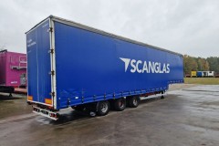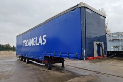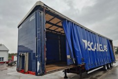 MTDK naczepa niskopodwoziowa firanka 2011 rok; 3 osie SAF; hamulce bębnowe; długość: 13,60 m (9,55 m + 4,05 m); wysokość dolnego pokładu: 0,85 m; dach podnoszony;