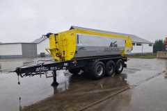 MTDK przyczepa wywrotka TRIDEM 2013 rok; 3 osie BPW; hamulce bębnowe; ABS; pneumatyczne zawieszenie; wywrot na tył; izolowana zabudowa; wymiary zabudowy wewnętrzne: 5,40 m x 1,40 m ; DMC: 23000 kg; masa własna: 6380 kg; ładowność: 16620 kg;