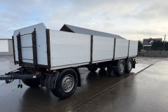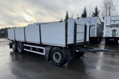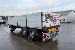MJS przyczepa burtowa, budowlana 2008 rok; ABS; pneumatyczne zawieszenie; 3 osie SAF; hamulce tarczowe; 1 oś podnoszona; burty oraz podłoga aluminiowe; wymiary skrzyni ładunkowej: 7,70 m x 2,47 m x 1,00 m; DMC: 24000 kg; masa własna: 4500 kg; ładowność: 19500 kg;