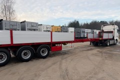 TRAILERPARTNER platforma rozciągana burtowa 2012 rok; ABS; pneumatyczne zawieszenie; 3 osie SAF; hamulce bębnowe; ostatnia oś skrętna; długość: 12,20 m + 6,00 m;