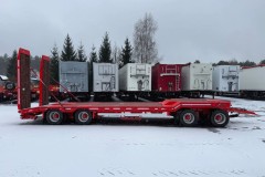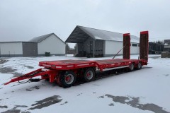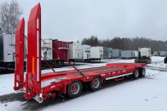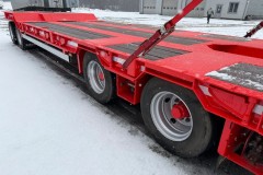 GOLDHOFER przyczepa niskopodwoziowa 2010 rok; ABS; pneumatyczne zawieszenie; 4 osie BPW; hamulce bębnowe; najazdy hydrauliczne; długość powierzchni ładunkowej: 9,25 m; szerokość: 2,54 m (poszerzana do 3,00 m); DMC: 24000 kg; masa własna: 8960 kg; przyczepa po odnowie lakierniczej;