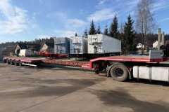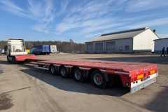 NOOTEBOOM naczepa niskopodwoziowa 2008 rok; ABS; pneumatyczne zawieszenie; 4 osie SAF; hamulce bębnowe; 2 x oś skrętna; długość powierzchni ładunkowej 12,40 m (3,40 m + 9,00 m) + rozciągana 6,80 m; DMC konstrukcyjne: 58000 kg; masa własna: 11500 kg;