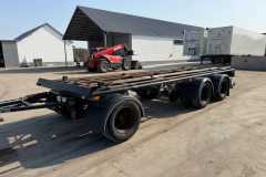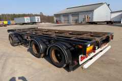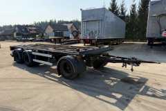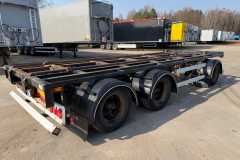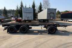 NOPA przyczepa hakowiec do kontenerów 2005 rok; ABS; pneumatyczne zawieszenie; 3 osie BPW; hamulce tarczowe; oś podnoszona; DMC: 24000 kg; masa własna: 4250 kg;